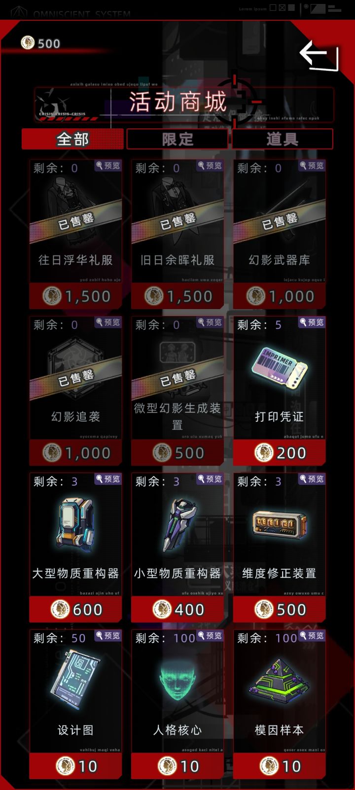 希望可以出一个外观预览图鉴可以浏览和试穿所有外观,点击能看到获取方式。有些已经下架的外观我都不知道存在过,还是在论坛翻到大佬的外观帖子才知道有哪些漂亮衣服૮₍ɵ̷﹏ɵ̷̥̥᷅₎ა卖外观的游戏一般都会有这种预览图鉴的,应该不会很困难,希望可以出一个!拜托拜托 ୧〃•̀ꇴ•〃૭