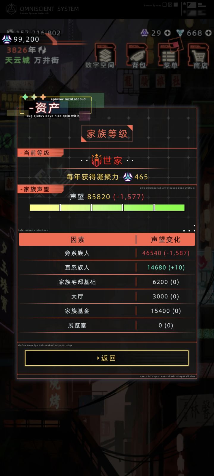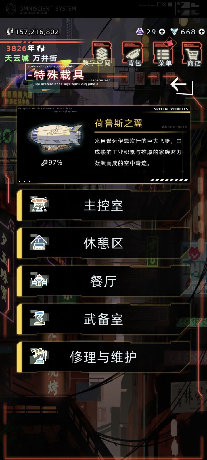这个档玩到28代了,家族也是满级望族,公司也是满级公司了,所以收入非常稳定。让我个人认为它鸡肋的主要原因就是这个武备室,我不知道这个飞艇当时出的时候这个武备室怎么样,但是现在武备室能够提供的护卫实力已经很差了,跟不上现在的版本了,起码我认为是匹配不上这个飞艇的价值和身份的。而且这个战斗练习能够增加的buff感觉还不如不给,3点,蚊子腿是吧,还有那个弯刀,又没有啥特殊的机制,基础属性也不是很强,它