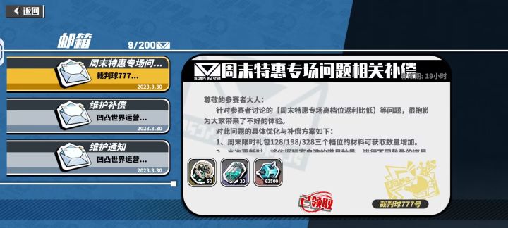你说礼包奖励不对,维护补偿。这就是你们的补偿?上周买了128以上礼包的直接又发了一次全额奖励。然而我们这些买了128以下的就什么都没有。你们这补偿是否对购买了30 68 98档位的玩家极不公平?真有你的官方。