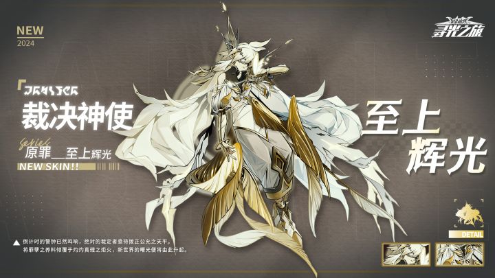 #凹凸世界寻光之旅 ▷心之回响-皮肤展示裁决神使『原罪』至上辉光「倒计时的警钟已然鸣响,绝对的裁定者亟待拨正公允之天平。将罪孽之养料倾覆于灼灼真理之炬火,新世界的曙光便将由此升起。」===============================※关注球球及时获取更多内容及最新资讯!