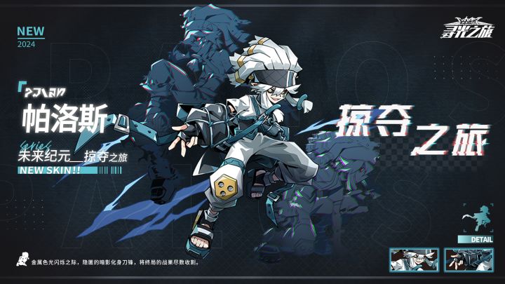 #凹凸世界寻光之旅 ▷通行证-皮肤展示帕洛斯『未来纪元』掠夺之旅「金属色光闪烁之际,隐匿的暗影化身刀锋,将终局的战果尽数收割。」=============================※关注球球及时获取更多内容及最新资讯!