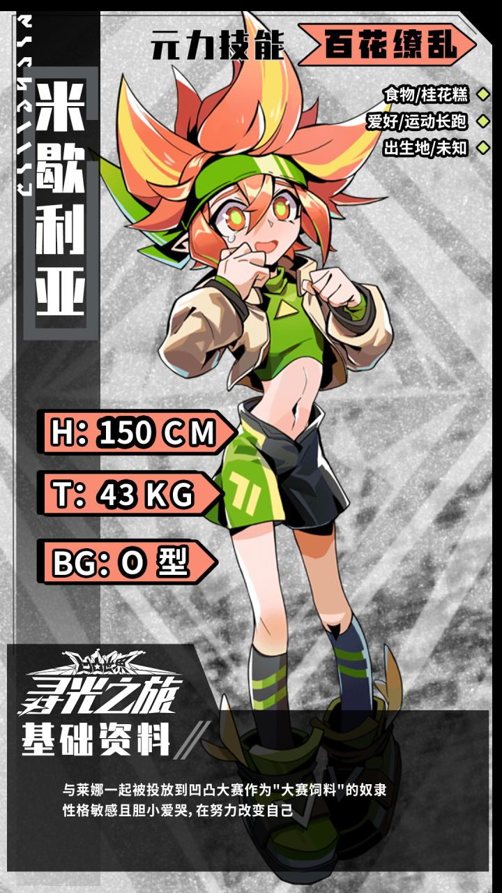 #凹凸世界寻光之旅 ♢大赛资料库·参赛者♢〈9022号大赛资料库相关权限已解锁,是否确认读取?〉〈读取指令激活……Loading……〉〈参赛者·米歇利亚 基础资料读取成功!〉========================与莱娜一起被投放到凹凸大赛作为"大赛饲料"的奴隶,性格敏感且胆小爱哭,在努力改变自己※关注球球及时获取更多内容及最新资讯