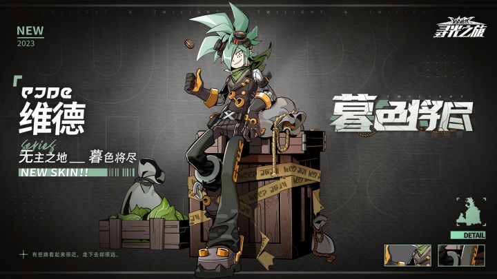 ▷奇遇跳跳棋-皮肤展示//无主之地-维德『暮色将尽』「有些路看起来很近,走下去却很远。」【04/28 5:00 - 05/05 5:00】『暮色将尽』可通过【奇遇跳跳棋】活动获取【技能展示】============================※关注球球及时获取更多内容及最新资讯!【寻光之旅】官方资讯平台:①官方微博:https://weibo.com/u/7733908630