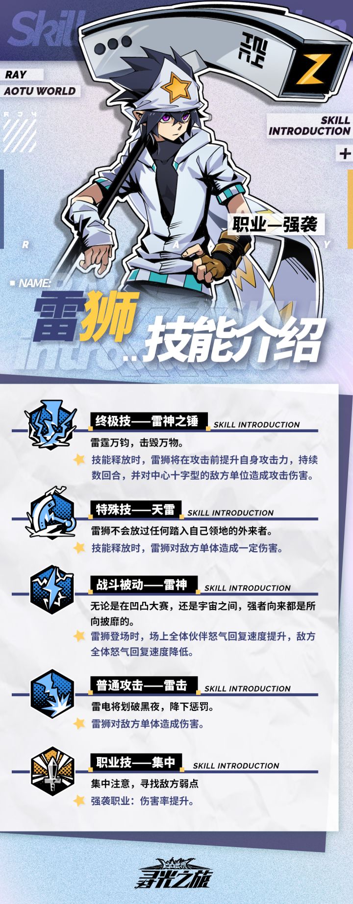 ♢参赛者技能指南·雷狮♢〈9022号参赛者技能指南相关权限已解锁!〉〈读取指令激活……Loading……〉〈雷狮技能介绍&进阶效果 读取成功!〉=======================参赛者们大家好呀!今天9022为大家带来了『雷狮』的技能介绍以及进阶效果,助各位参赛者更好地安排作战伙伴呦~▷官方服下载通道见评论区官方1群:421930021官方2群:922948619