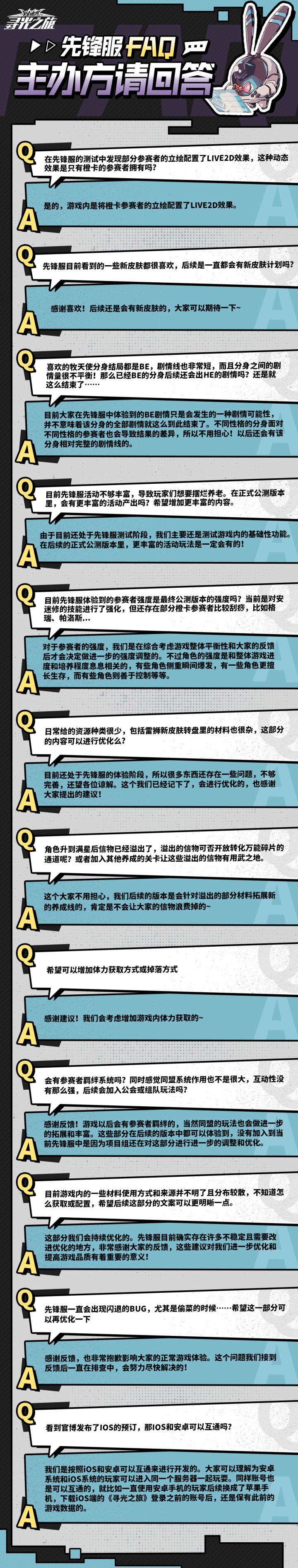 ▷主办方请回答-先锋服FAQ在先锋服付费转移规则发布后,9022留意到大家还有诸多疑问,在此为大家解答~详细内容还请点击长图查看!☆此外,官方安卓包现正式开启预下载,iOS开启时间还请留意后续通知!各位参赛者可点击长图查看下载通道,待2月1日10:00官方服正式开启后即可进入!(先锋服参赛者无需再次下载官方包,官方服开启后即可进入)官方安卓包下载途径:《寻光之旅》官网▷凹凸世界寻光之旅