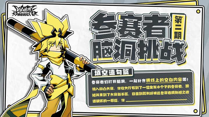▷参赛者脑洞挑战脑洞挑战第四期!本周挑战题目为填空造句!大家在大厅领取完自己的元力技能后,看到一位参赛者直接朝着危险区域飞去,你会……?打开脑洞,在评论区分享答案吧!★大赛主办方★官方7群:747181655