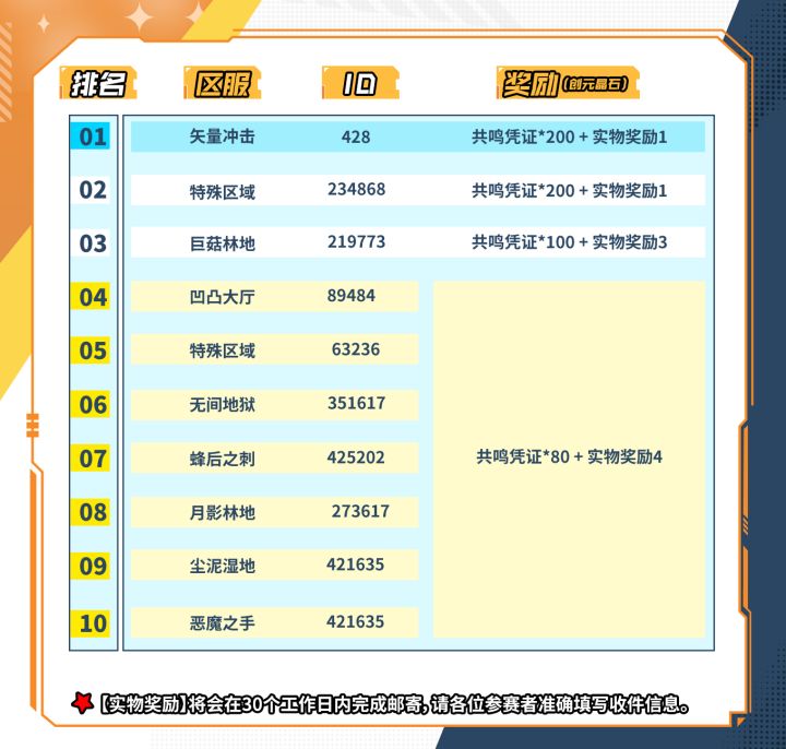 参赛者们大家好哇!本期《寻光之旅主播招募活动》已于4月28日圆满结束,感谢参加此次活动的所有参赛者与主播们!!同时恭喜以下参赛者获得本次活动奖励(✪ω✪)⭐直播勤奋奖⭐⭐直播普照奖⭐我们将为以下参赛者送出【共鸣凭证*10】奖励【注意事项】1、请各位获奖的参赛者查看下自己的区服及编号是否正确,如果有问题请及时联系客服裁判球邮箱:2、【共鸣凭证】奖励将会在14个工作日内发放至各位参赛者的