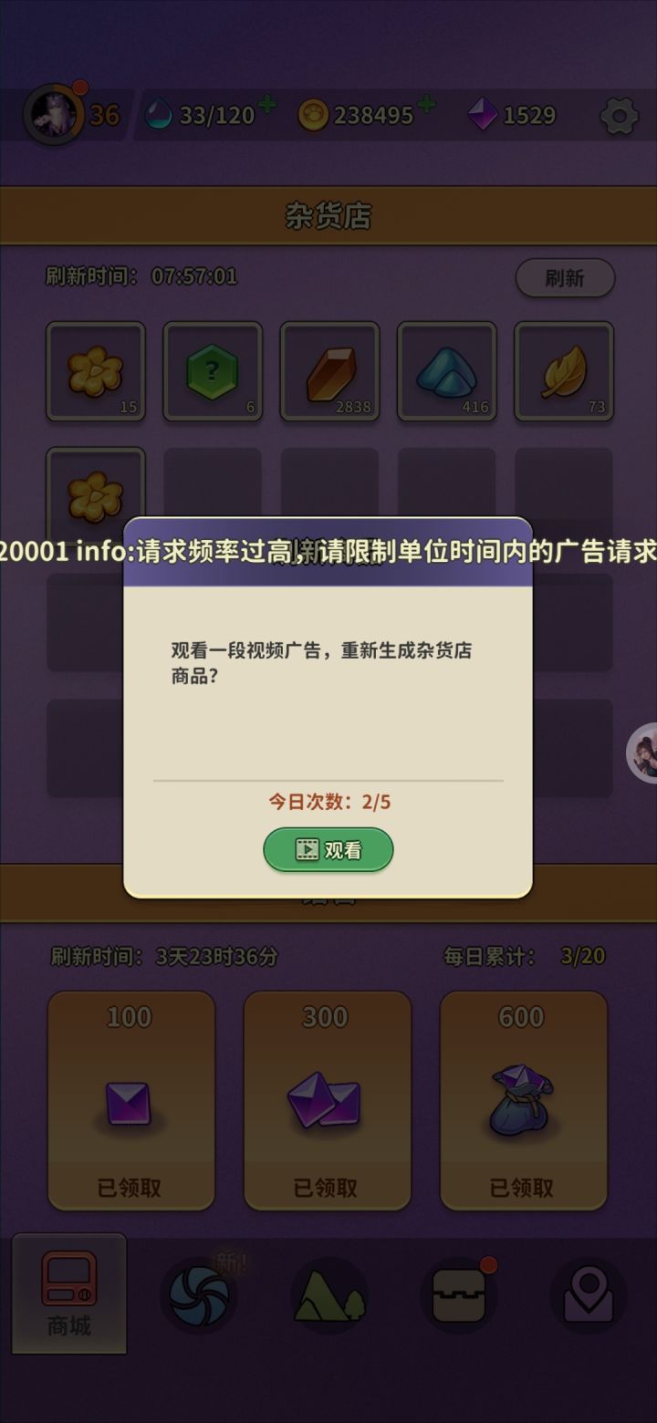 一个广告游戏不能看广告了,玩个鸡毛。连着两天了。我看客服说是间隔一段时间在看,刚开玩那几天每天50个广告都没事,这两天每天20个都看不满。真不知道是谁的问题。。