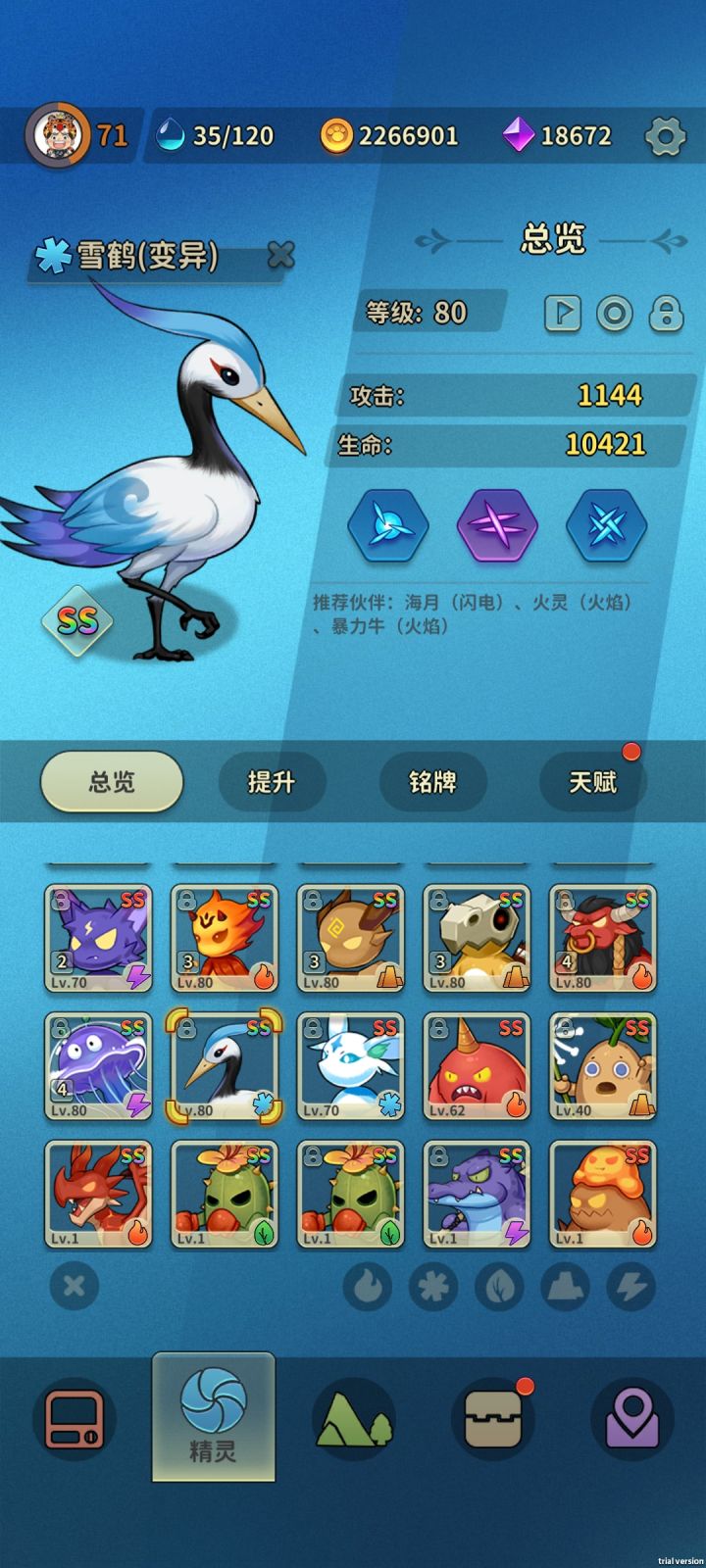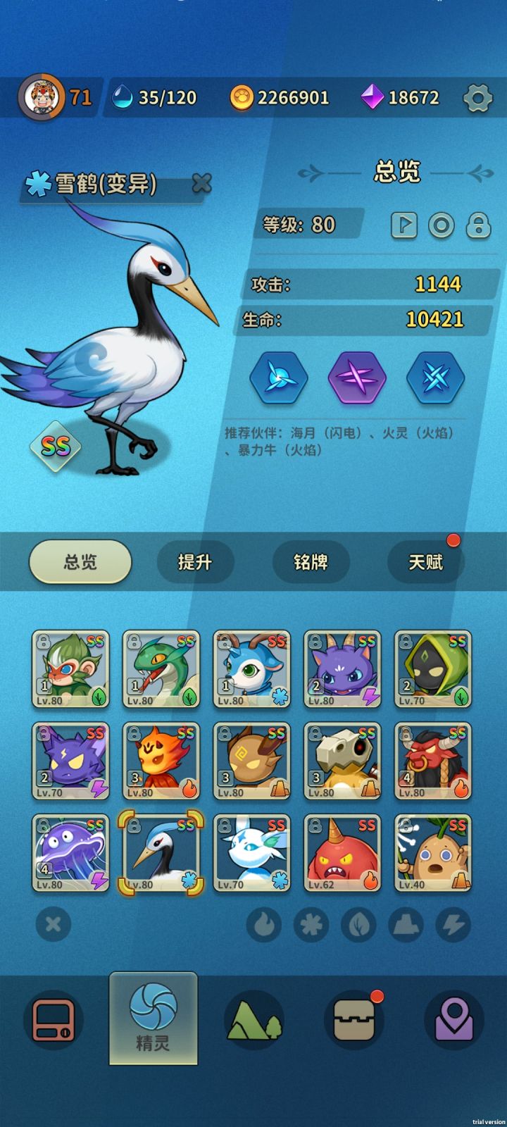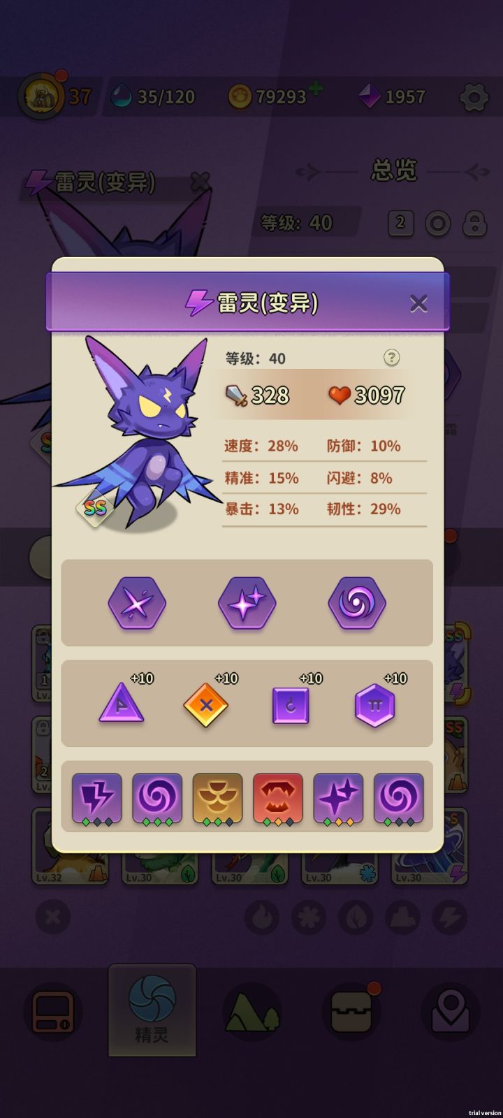 起源之塔暂时通关纪念;组了四个队伍,还差两个没80级,灵石目前也只能升两套45级;14个变异,初始技能点都很低,脸黑?脸白?😅;后面就是挂机刷新精灵了,tap大神们赶紧出新攻略让我抄抄作业😘