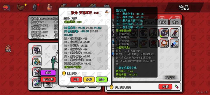 先上一张猴戏镇楼图随着挑战层数的上升,难度也渐渐变大,血剑开始出现秒人情况,所以俺根据伍六七大佬的法坦配装,稍微优化了一下,为各位小伙伴带来心眼套的搭配。心眼套配装:这个配装在保证输出的前提下大大提升了生存能力,适用双10死神,以及挑战600层以下(暂时是)。但是随着挑战层数的提升,配装情况将会逐渐向伍六七大佬的法坦靠拢。(我猜测血剑有类似破散的技能,护盾的作用将越来越弱,所以法坦路线可能是