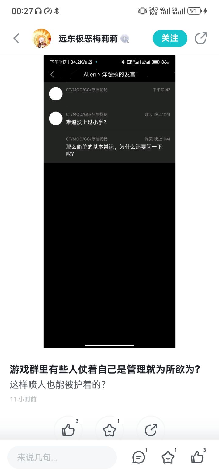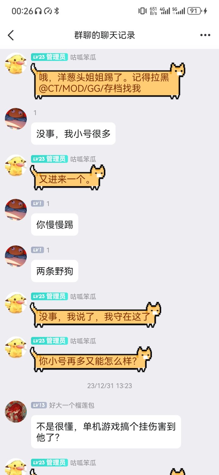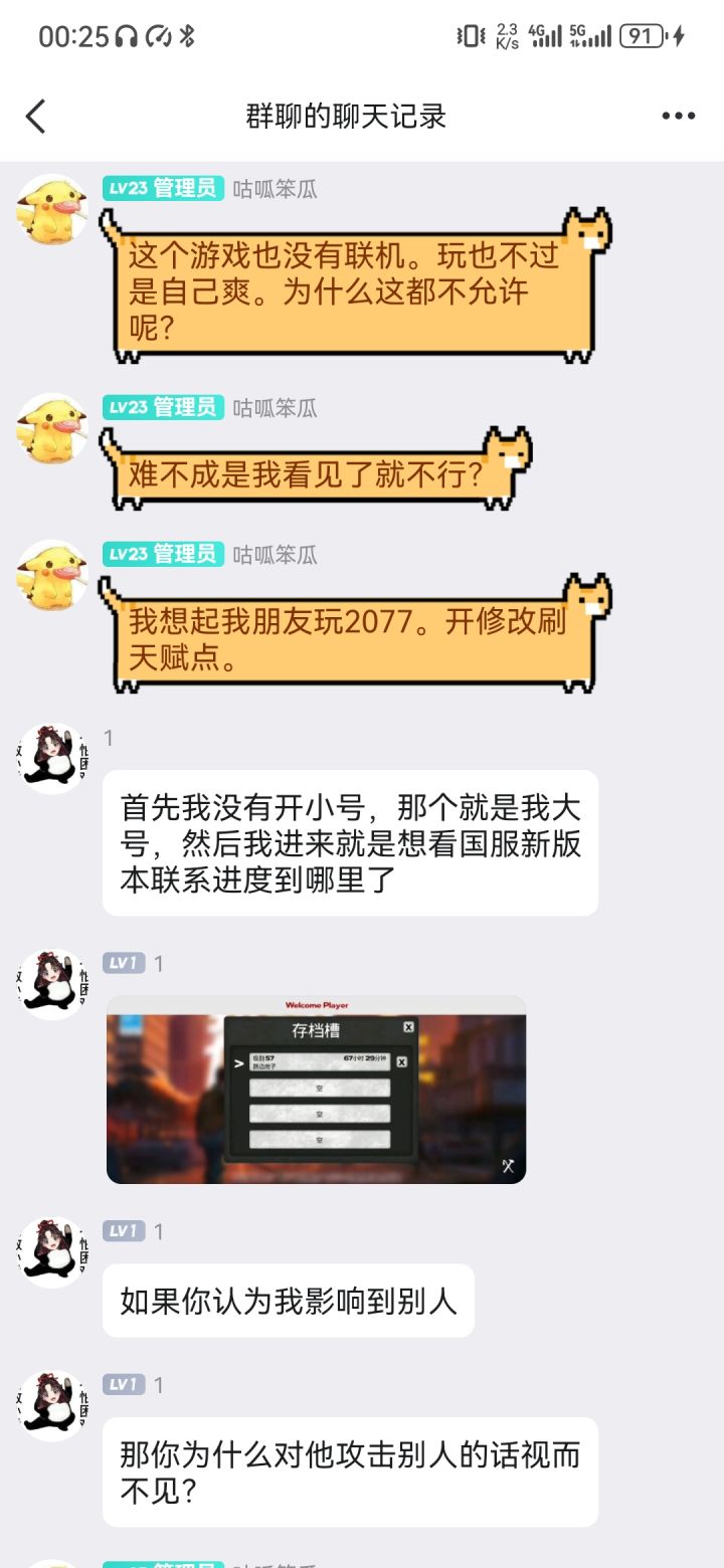 废话放在前面,正如标题所说,一个无法联机的单机游戏。现在有了局域网那又能怎么样?同时很多人在线?不可能。而这个人干了什么呢?管理在群里日常发自己所创作的魔改版,而他和管理起了争执,原因是不允许发修改相关的东西,可问题是,也是我上面那一段说的那样,单机游戏为什么不能修改?他自己不用。还不允许别人一起不用。凭什么?被踢了之后就开始“挂论坛”“去攻略下面找茬”等行为。哦,我忘了补充一点,他在挂人之前