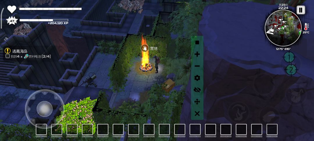 图七:古墓,内围都是呈圆形,外围石柱呈四方形或者圆形石柱阵包围,找不到古墓具体位置的,可以看图一古墓的大概位置,然后把自己的游戏里的地图放到最大,在大概位置找这种样式的地形,那就是古墓。