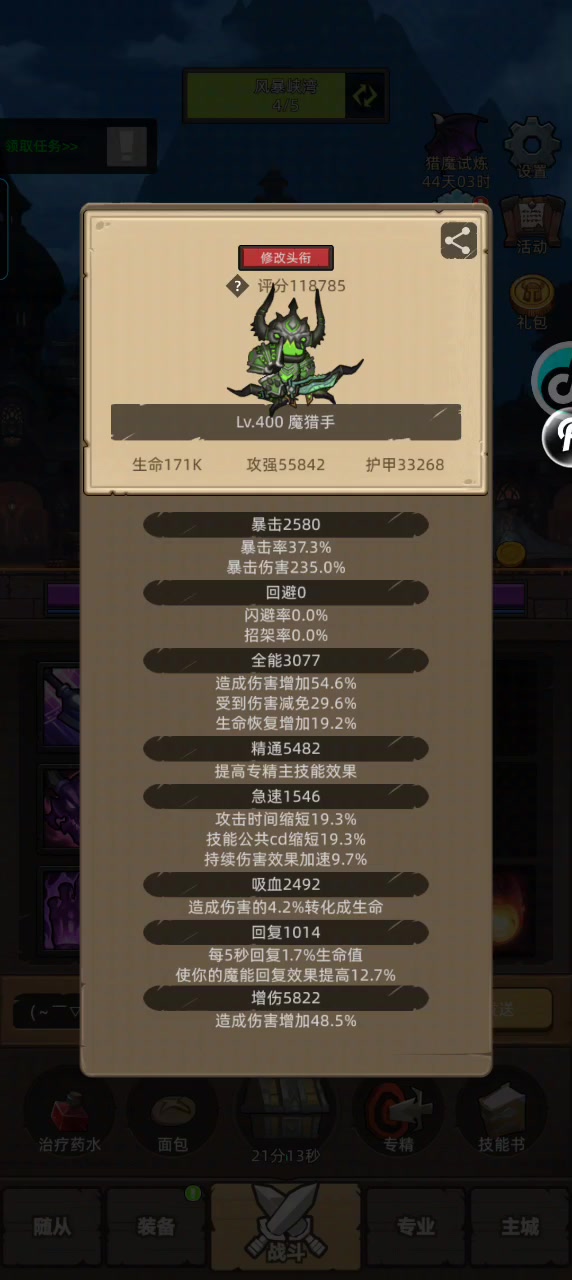挂机-魔猎手-箭术-评分7.8w无药史诗真理之地通关视频