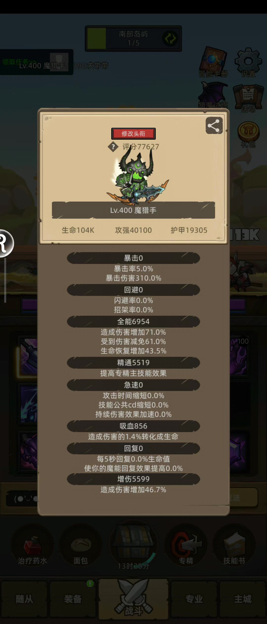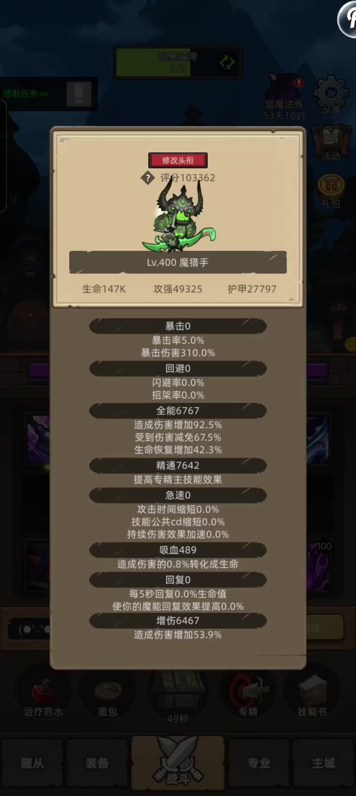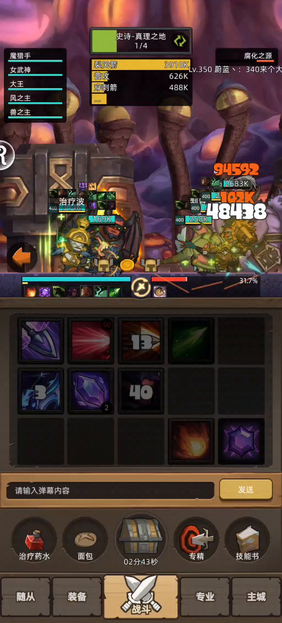 #异世界勇者 挂机-魔猎手箭术10万分无药史诗真理之地通关视频