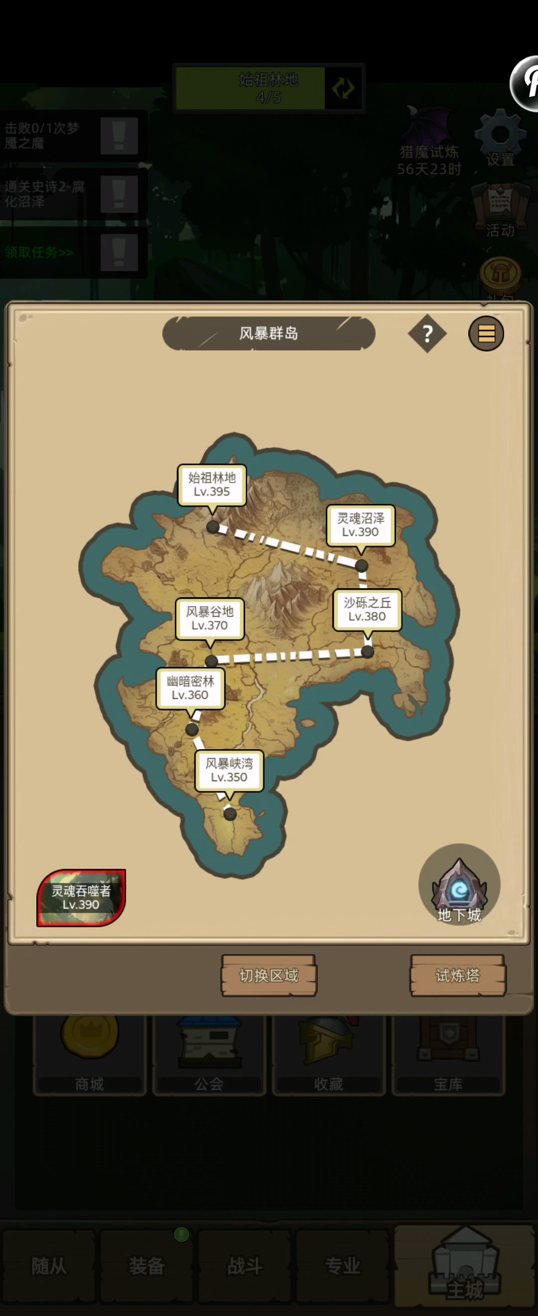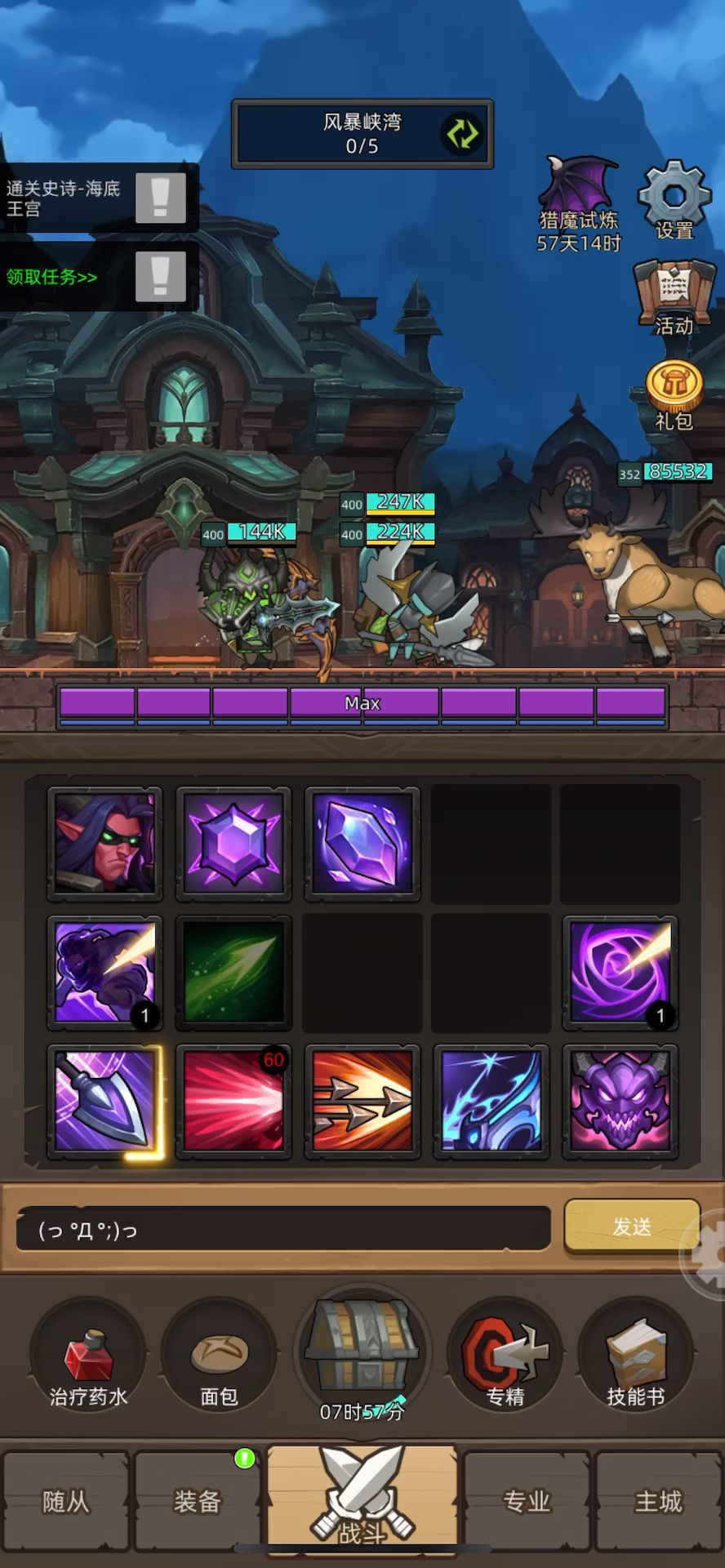 挂机-魔猎手-狩猎专精-评分:10w-关卡名称巨魔陵墓和史诗14通关视频