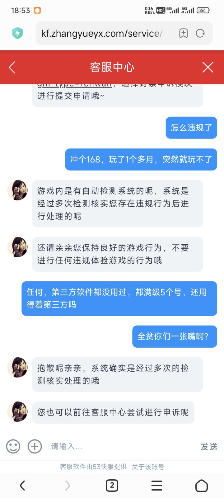 充了168,,肝了一个多月,无故被封。说是系统自动检测请问,要玩违规,充钱干什么?
