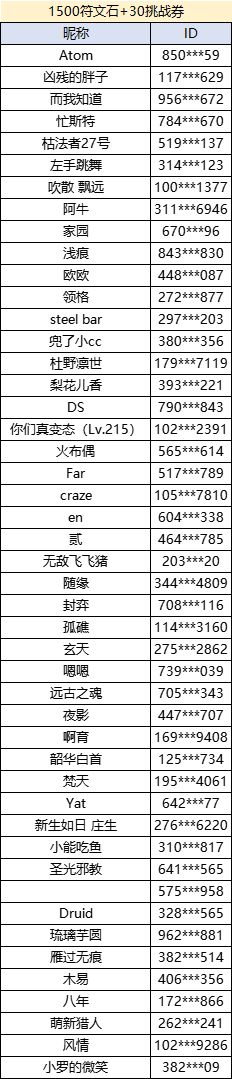 HELLO 这里是小助理,特别奖励活动名单发布至今,还有部分获奖玩家没有提供ID给我们,请在名单中的玩家尽快将游戏ID通过QQ的形式发送给[冰冰],便于我们进行奖励发放~