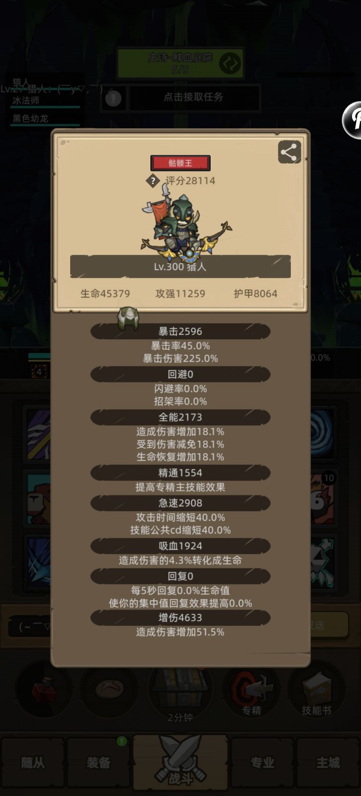 这个本大多数职业都打不快,3分16秒可以接受,17961分,6985攻强,饰品灼烧龙鳞、稳固徽章,被动技能致死射击、瞄准射击、穿刺射击。