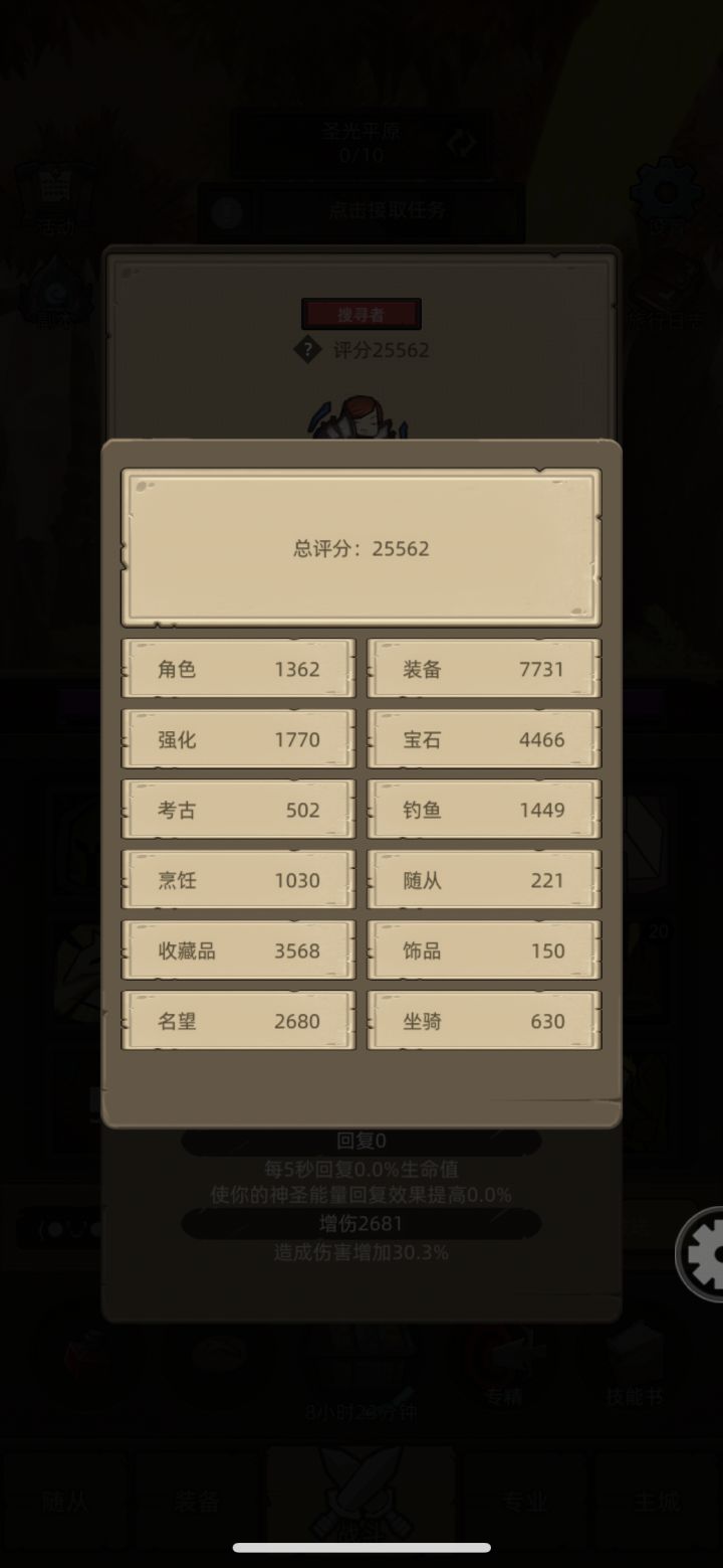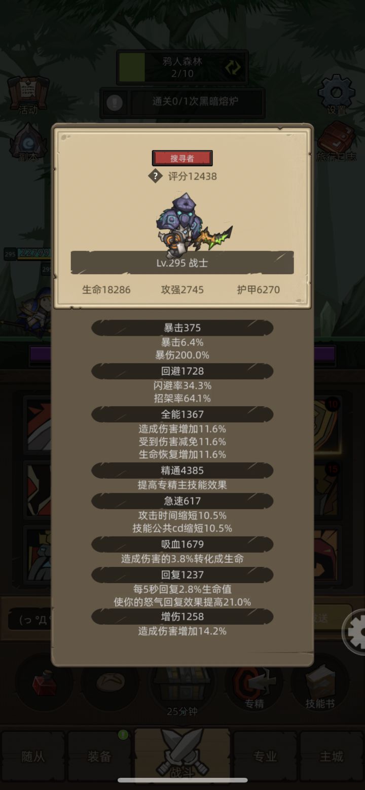 强化主手副手30,其他15,名望1级,钓鱼考古约等于没有,随从符文图腾2星,森林之子3星活动英雄副本出,这一把随从爆种了,所以轻松点儿,专门假死一下尊重下boss