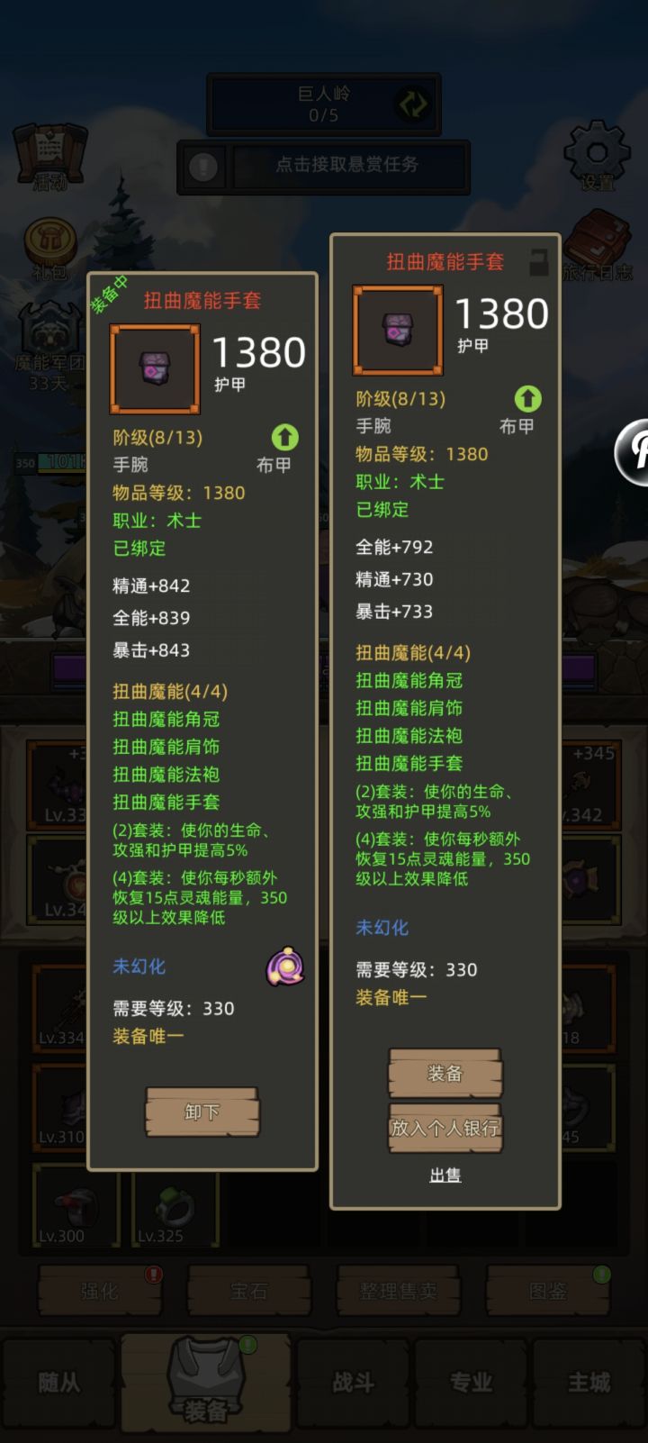 同样等级的装备,属性差异