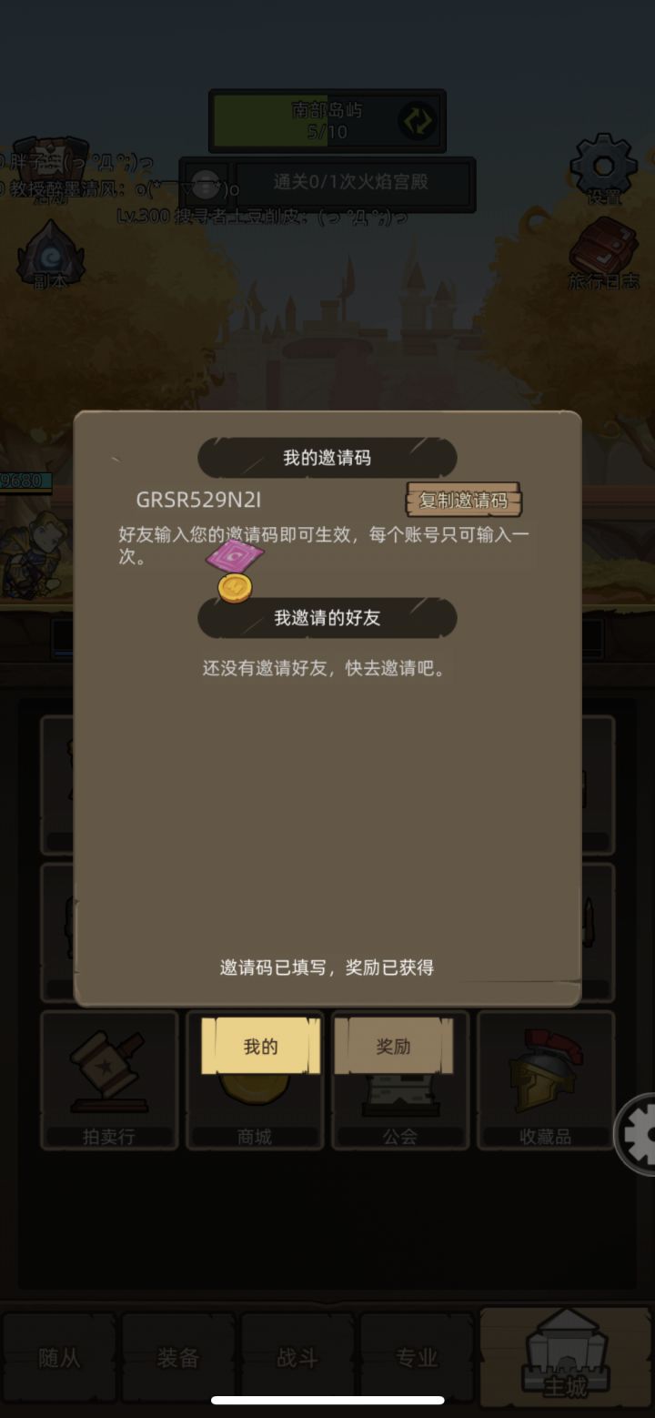 GRSD7N47AC免费领取2w金币和500符文石,本人已经10个300级,点击左上角"活动",进入后点击"战友招募",最后点击输入邀请码即可。也可加入公会 一把菜刀走天下,可每日领取500木材3次。#游戏安利