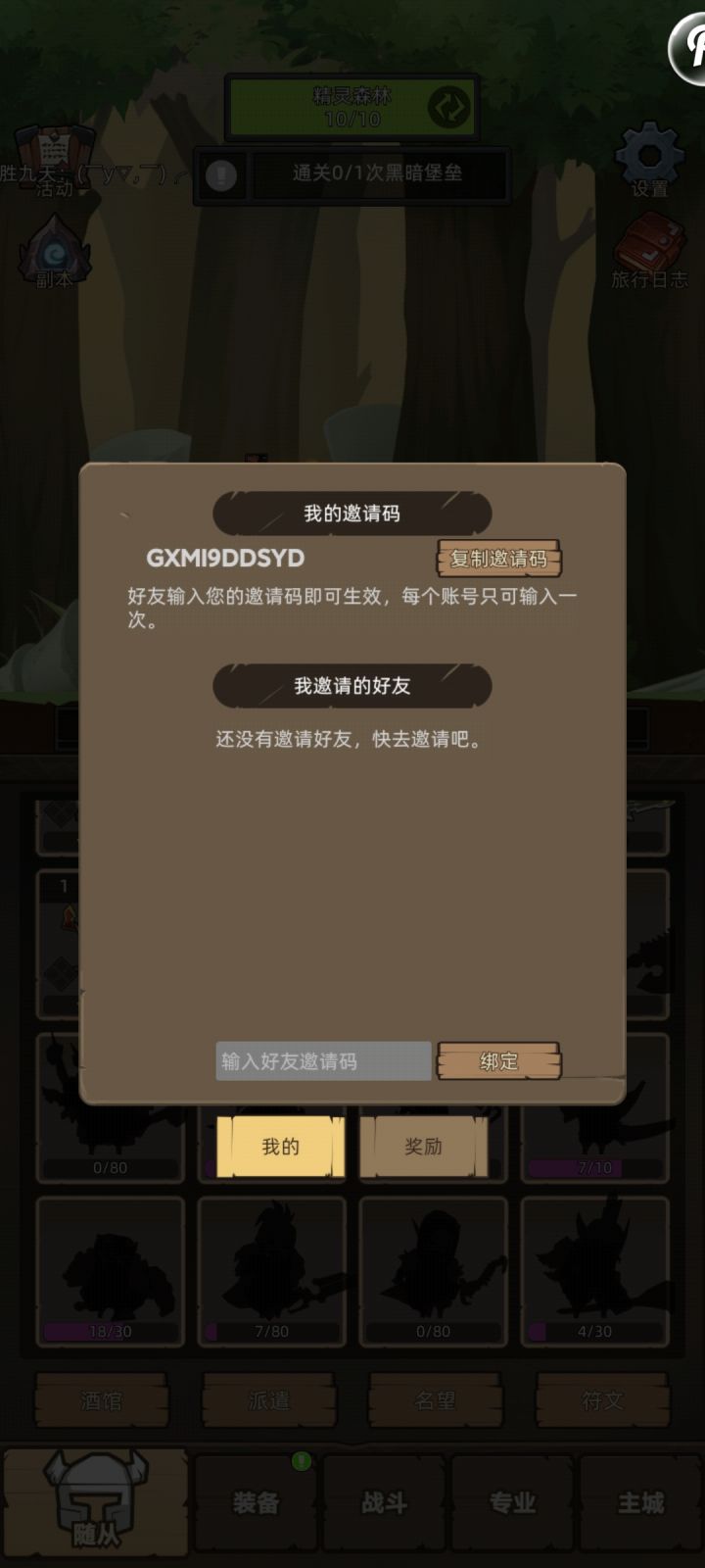 GSIPIHUY6W免费领取2w金币和500符文石,本人已经10个300级,点击左上角"活动",进入后点击"战友招募",最后点击输入邀请码即可。也可加入公会 一把菜刀走天下,可每日领取500木材3次。#游戏安利
