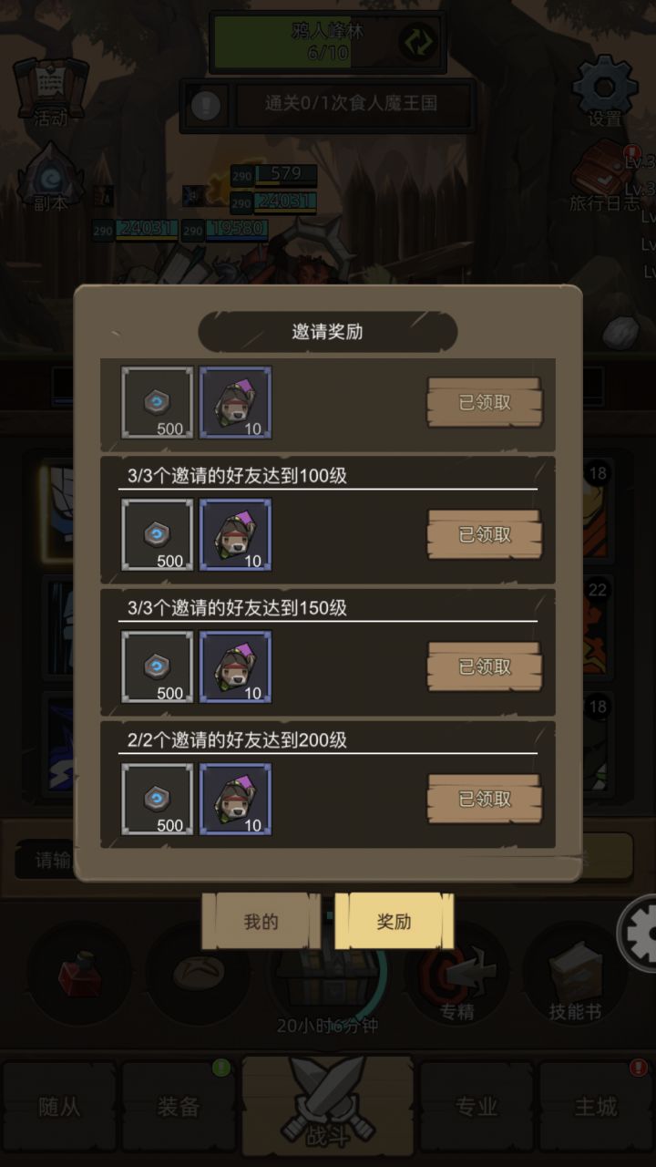招募活动,我的小号终于2各个200级,一个150级啦!!!哈哈,再也不用找人来弄啦!!!我发现,用防御圣骑士,真的很容易200级!!!第200关,磕个药就过了。一直打断boss技能,不要太容易过了!!!