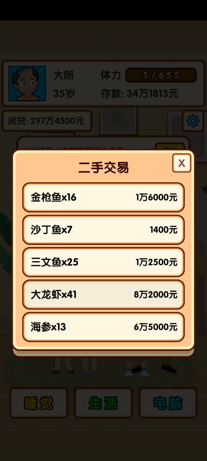 这隐藏任务太惨了。得重新开始。爹做手术500万。没有600万先别还完房贷