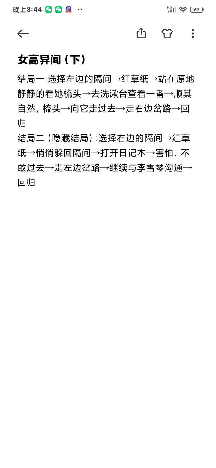 女高异闻上是全结局,女高异闻下我只能说我尽力了,打了好久才打出来两个