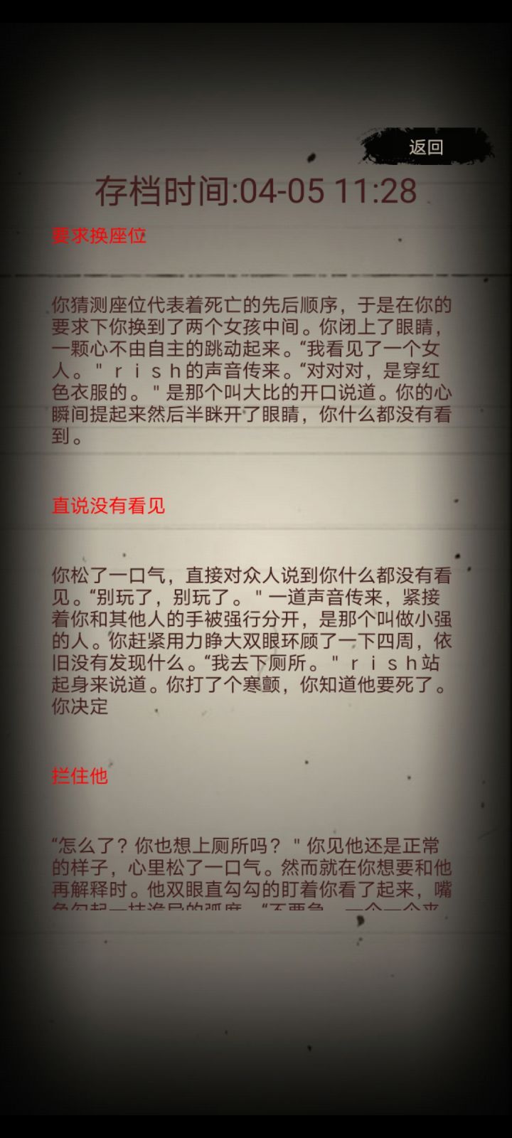 第一次玩,有没有大佬给个思路。有没有绝对安全的情况。什么禁忌不能碰之类的。。第一章过了好久了,就是过不去。求思路,不要剧透😵