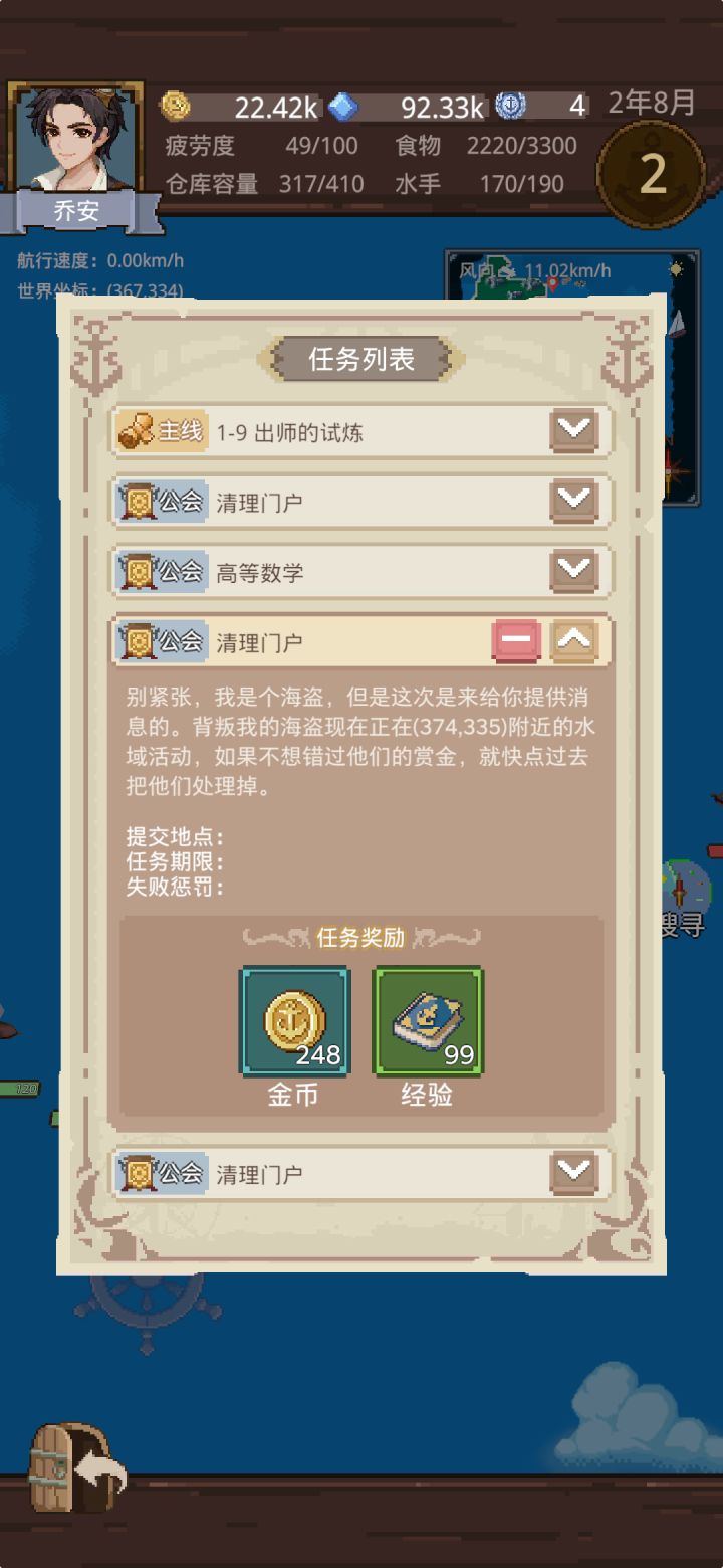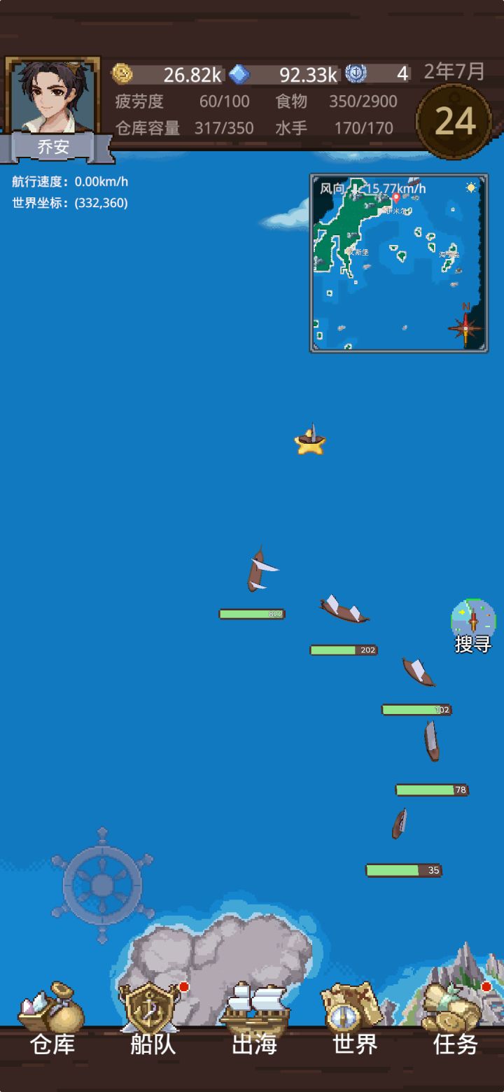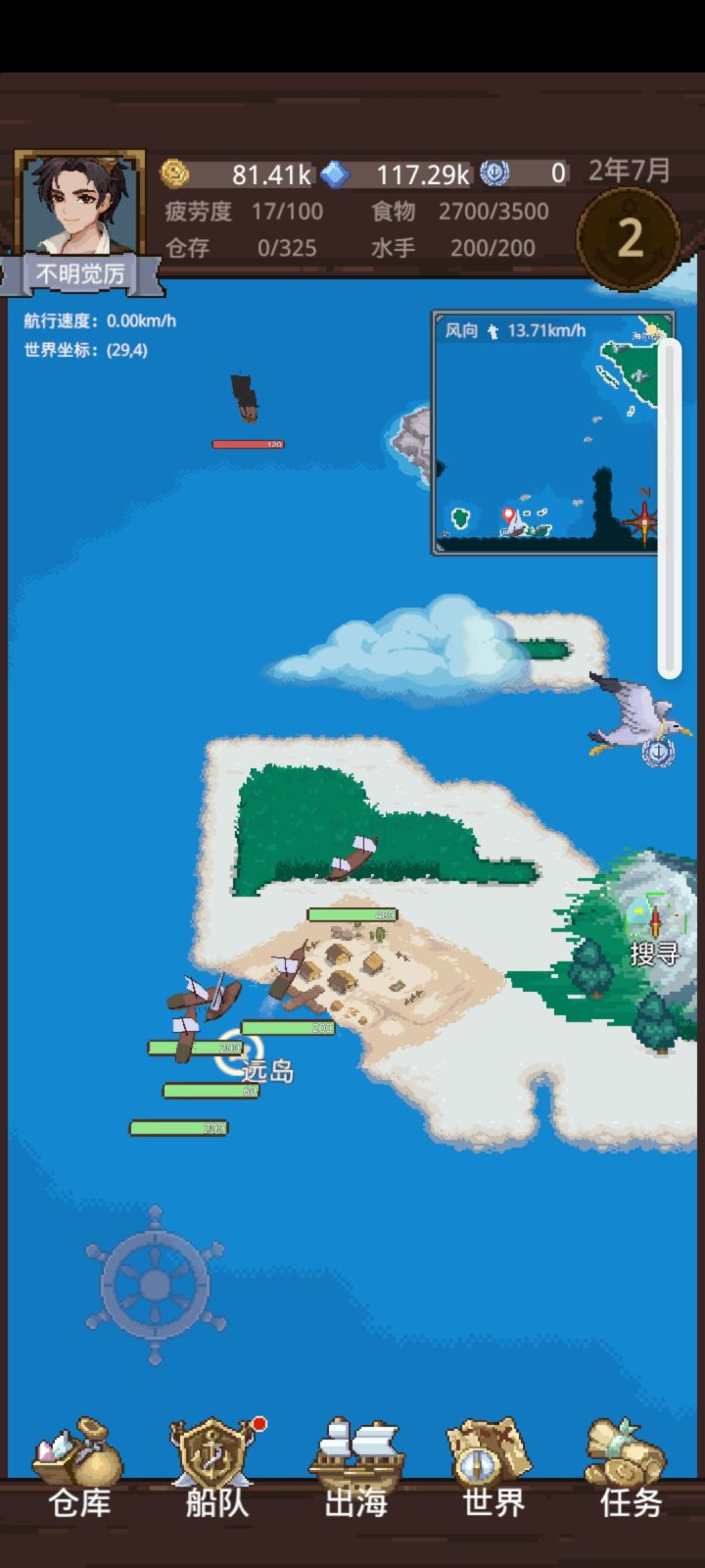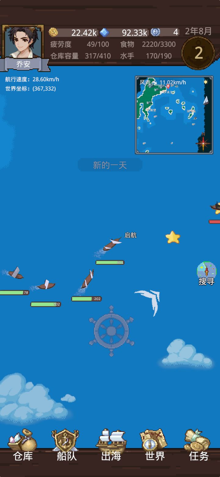 3.系统比航海2简化了,但是探索的乐趣没了。也没有了调节船员人数和负载粮食增加航程的乐趣。