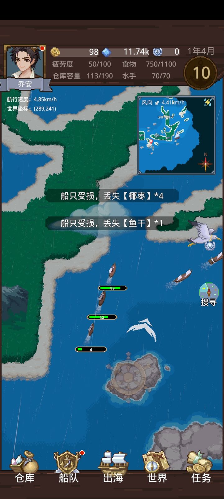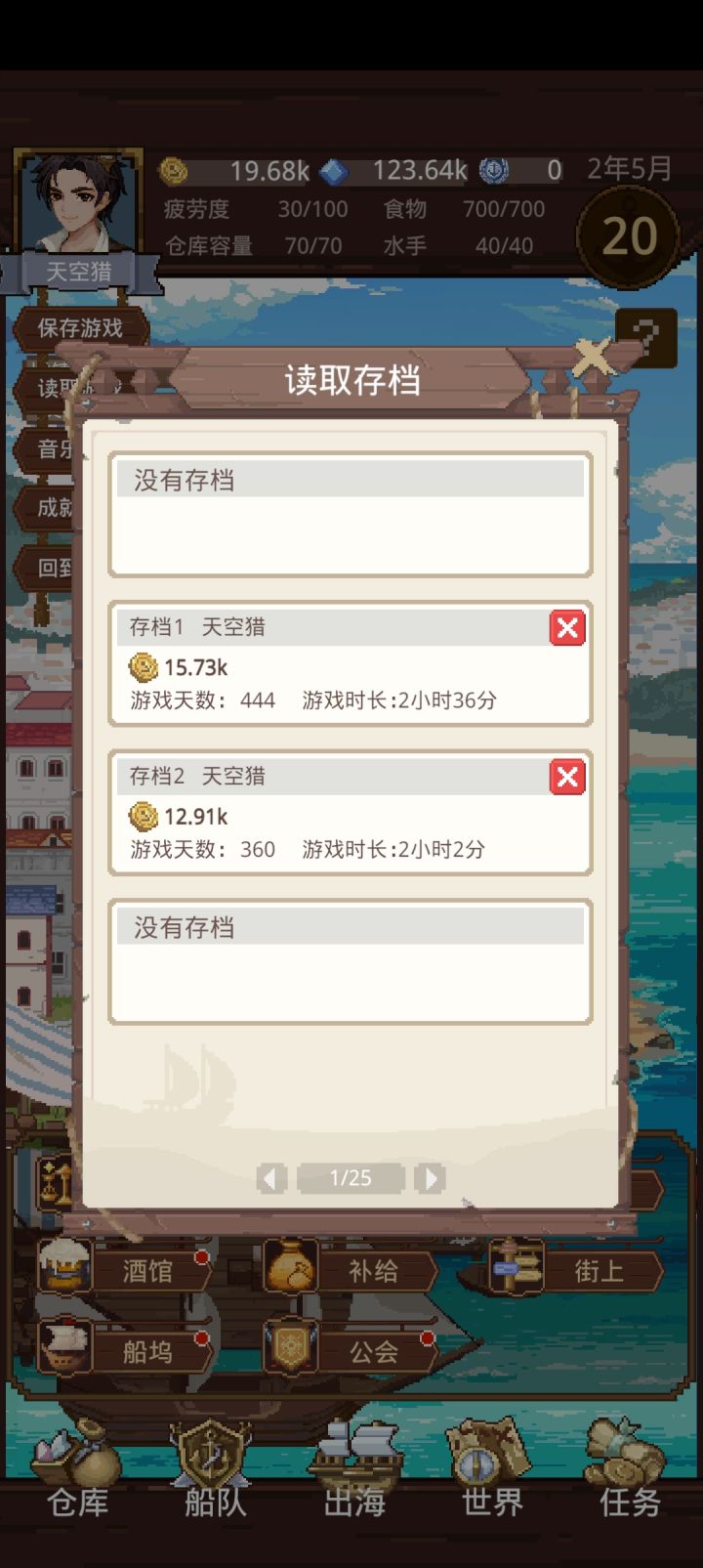 我在地图最右上港口海宁岛投资,投资到8级满级时候突然卡bug。然后点击进货点不进去。好吧,那就放弃海宁岛吧,其他港口还能玩,结果去了全地图港口,进货能点进去就是没任何货物,我就出来航海探索浪费时间,等到新的一个月重进进港口,还是没货物。这直接变死档,没法玩。浪费我5个小时。。。。。