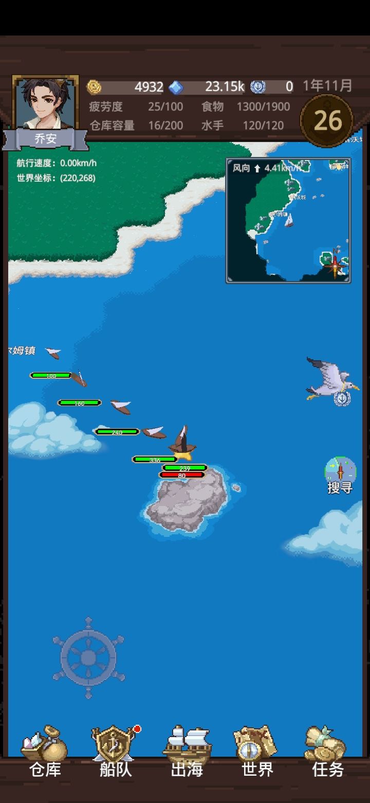 一个bug,先点出海然后点自动航行,自动航行途中经过别的城市时会直达目的地的城市,但船还在原地,就可以用来跑商刷钱。