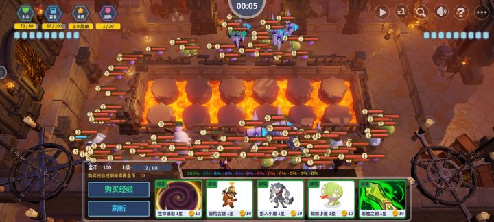 核心玩法,就如制作人而言,逆向塔防,轻度肉鸽。初上手时,的确玩法上的新鲜感带来的游戏体验很不错,不过在屡次失败和摸索后,游戏内核系统的单调性逐渐显现。主要体现在三条设计线上,建筑系统中,目前看幽灵收益是最高的,野猪的收益较低,其他几个建筑的类似度比较高。建筑的选择难以形成策略性的选择,只能看发牌员的心情。装备系统中,目前看,梦境缠绕的优先级最高,主属性是吸血,同时二阶、三阶是唯一能提供攻击和血量加成的。技能系统中,我个人比较推荐打 BOSS 用终极大地,二阶眩晕、三阶减攻,清怪用暗影毒缥或者阳炎冲击。总体来看,三套系统的设计中,都有 TO 级别的存在,并与其他选项来开明显的差距,而其他选项之间的差异化和实际效果并不明显,因此,无法形成有效的策略性或者多样化的流派。