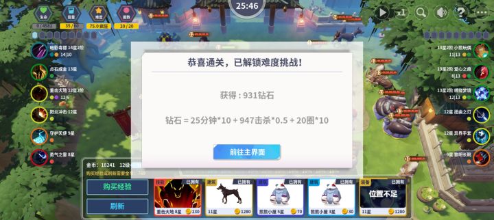 通关跟难度设置有关系的