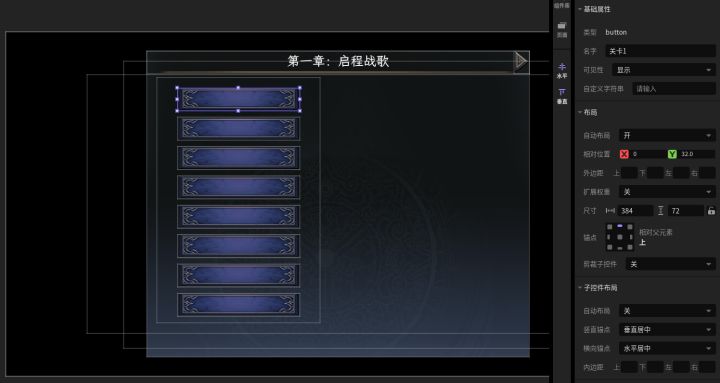 #星火编辑器 #星火编辑器入门 #游戏ui界面 #星火编辑器小功能分享教程 我正在尝试用『星火编辑器』制作一款卡牌游戏。在前面几期,我们挥洒创意,搓出了效果惊艳的3D主界面UI。为了响应玩家点击主线关卡按钮的操作,我们需要一个选关页面供玩家选择主线关卡,同时便于我们进行主线关卡相关功能的设计。界面的设计还是从创建panel开始,然后在panel的顶端创建代表章节名称的label。游戏第一章的