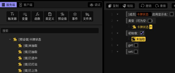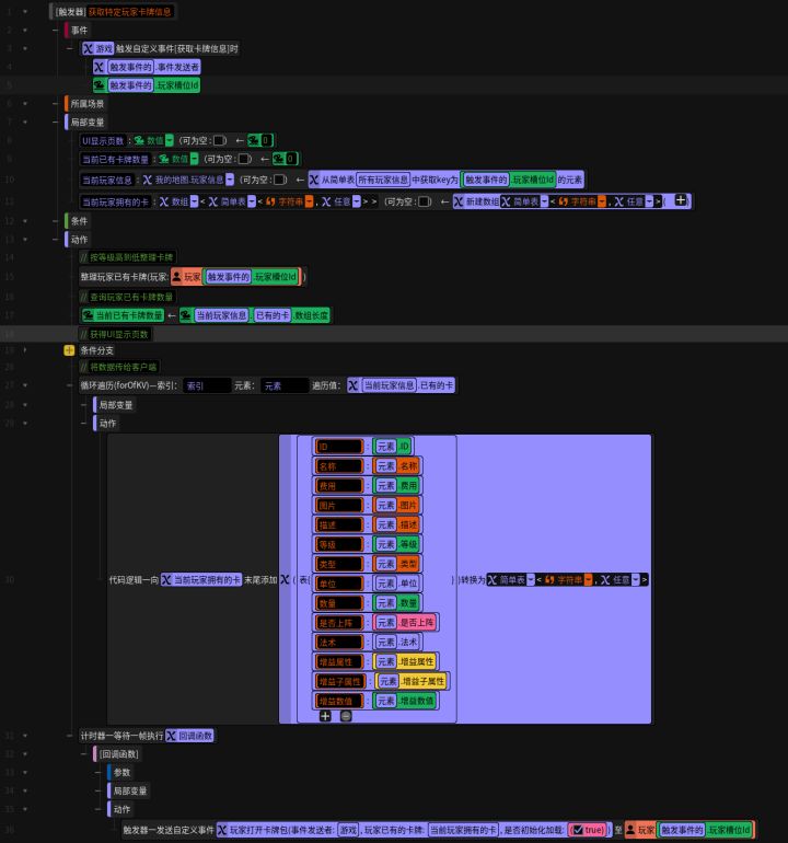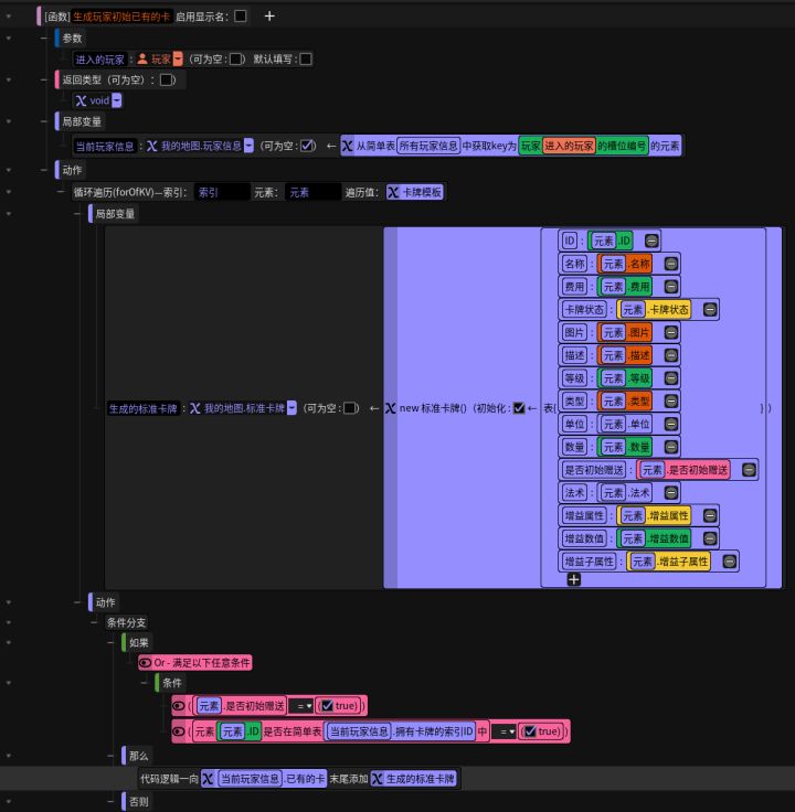 #星火编辑器 #星火编辑器入门 #卡牌游戏 #星火编辑器小功能分享教程 我正在尝试用『星火编辑器』制作一款卡牌游戏。经过前面的努力,我们已经可以做出卡牌,做出卡牌包,并且在服务端构建了卡牌属性信息。为了让每个玩家都有自己的卡包,我们还需要建立一个玩家类(“类”的概念上一期有讲),并在玩家类中创建一个数组*,用于存放玩家的卡牌,而数组的每个元素都是一张“标准卡牌”(P2)/*科普-数组:数组是