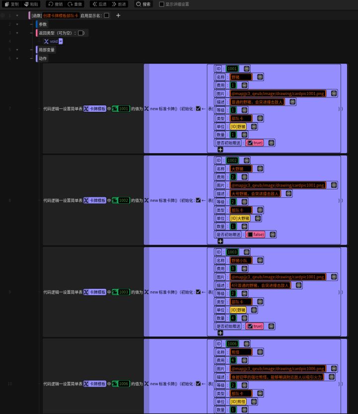#星火编辑器 #星火编辑器入门 #卡牌游戏 #我的游戏日记vol7 #星火编辑器小功能分享教程 我正在尝试用『星火编辑器』制作一款卡牌游戏。经过前面的尝试,我们已经可以做出一张卡牌,也能做出卡牌包。现在我们需要自动造一批卡牌,并把它们都装进卡牌包里。而自动生成卡牌的目标,就是自动生成一个P2那样的卡牌包供玩家选择、预览乃至上场自己的卡牌。那么话不多说,先从构建卡牌的属性开始。先为零程序基础的小
