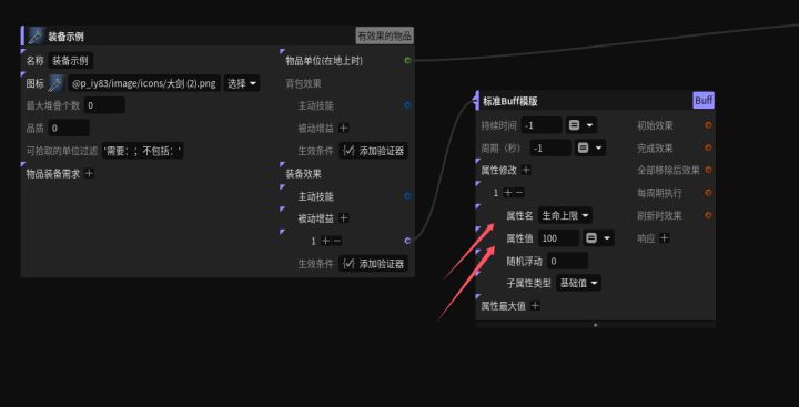 在数据编辑器里面定义一个装备示例,这里的属性修改数值能在触发编辑器里面修改设置吗。怎么实现