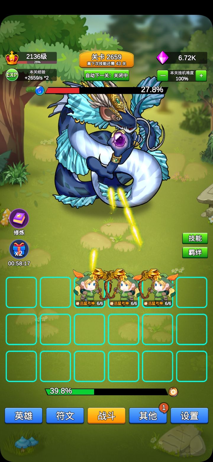 游戏没其它毛病。这次更新也很给力。提两点意见。1.收益双倍变成速度双倍或者多倍。2.牵绊太弱,而且没有职业牵绊。简单一句话攻略就是:能升角色就升角色,能升一个就不升多个,符文堆闪避。职业平衡嘛是没有的……