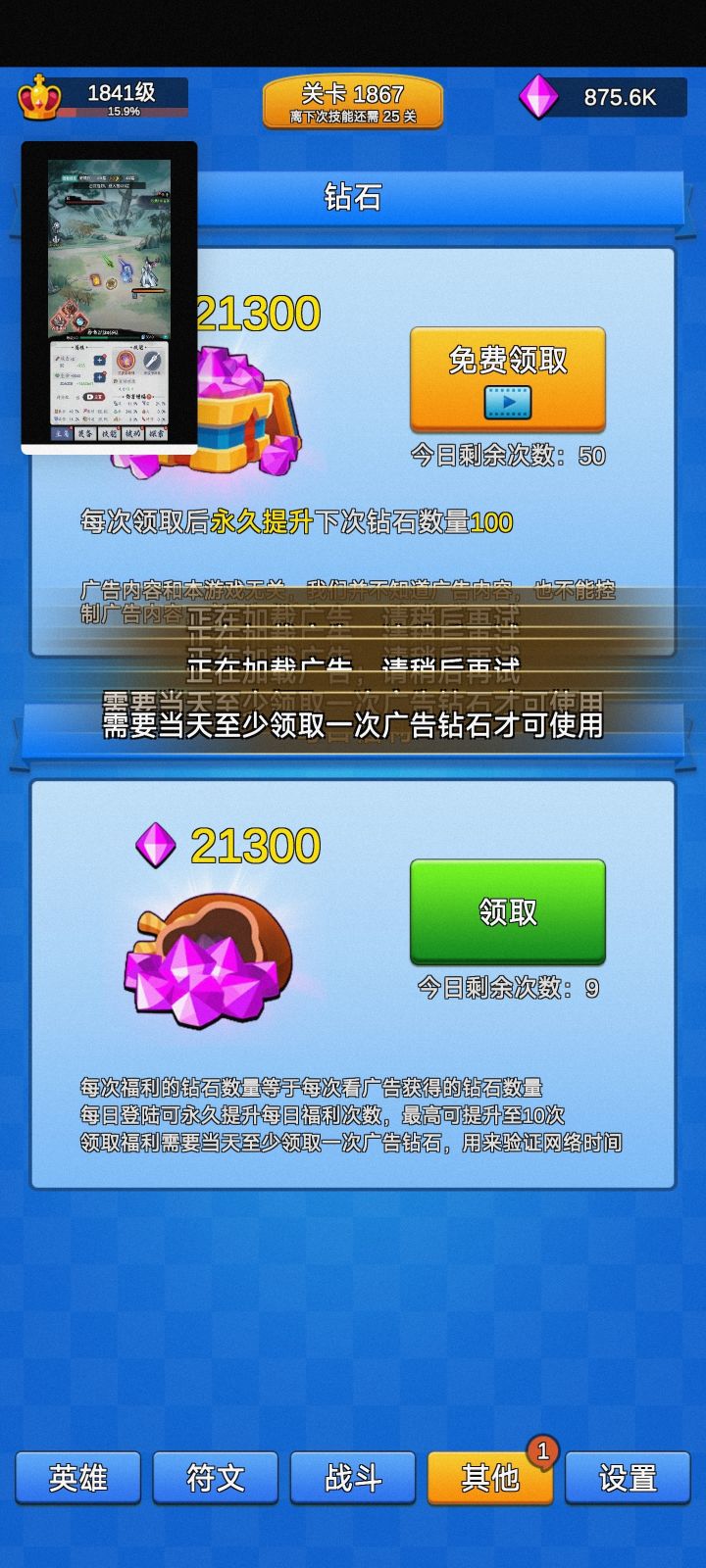 然而更新后,想要专精的巨额属性?想要终极技能?那抱歉,技能点不能给你了;想要技能点?那抱歉,属性是不可能给你多高了,终极技能你也别想要了(270技36000关的全金大佬可以无视)
