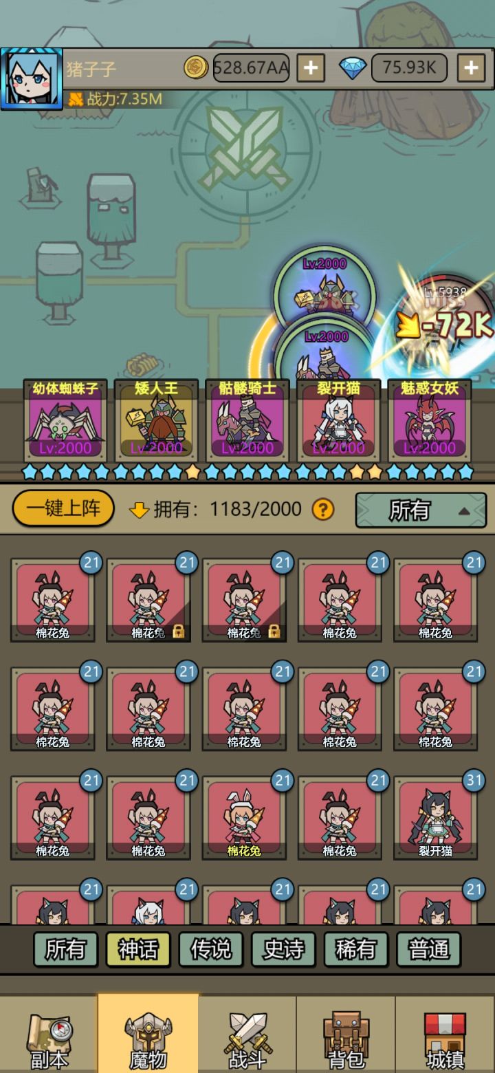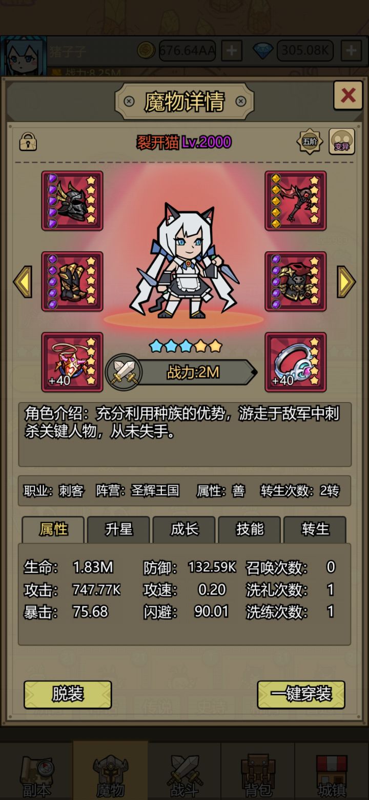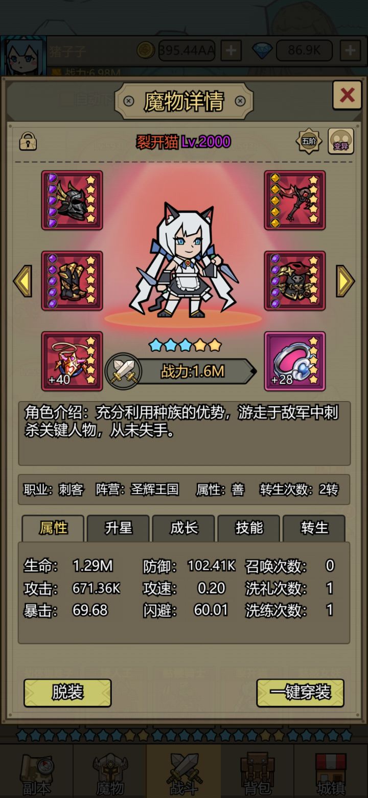 这猫的战力一直没矮子高😓42天佛系5000塔,,昨天官方出了7000关,只有继续转生推图了。。