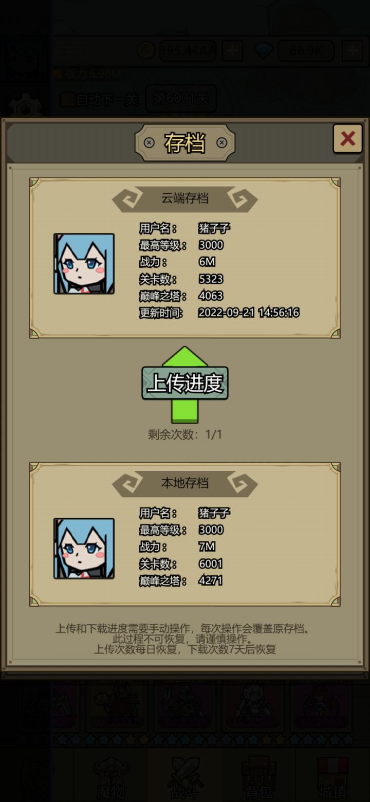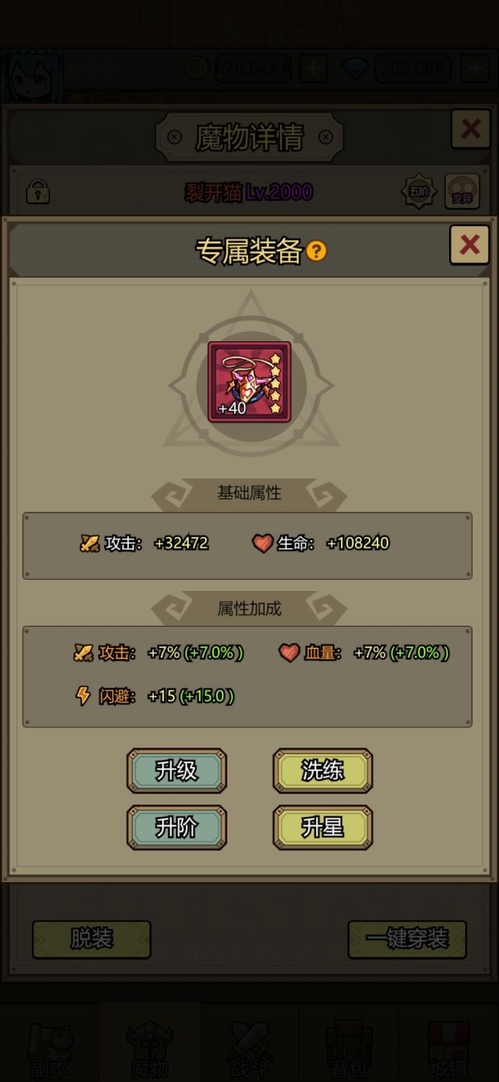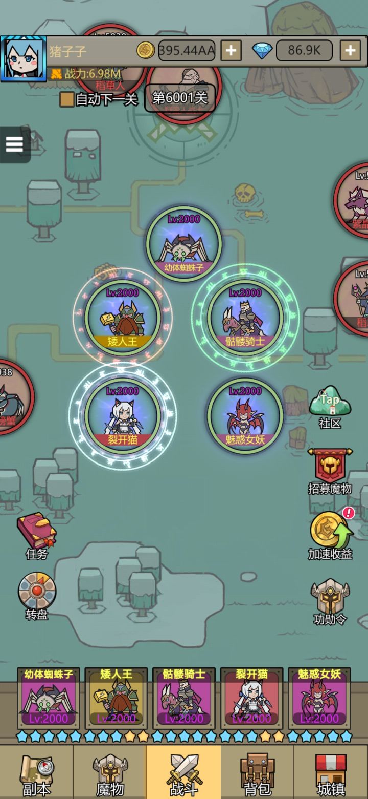 这猫的战力一直没矮子高😓42天佛系5000塔,,昨天官方出了7000关,只有继续转生推图了。。