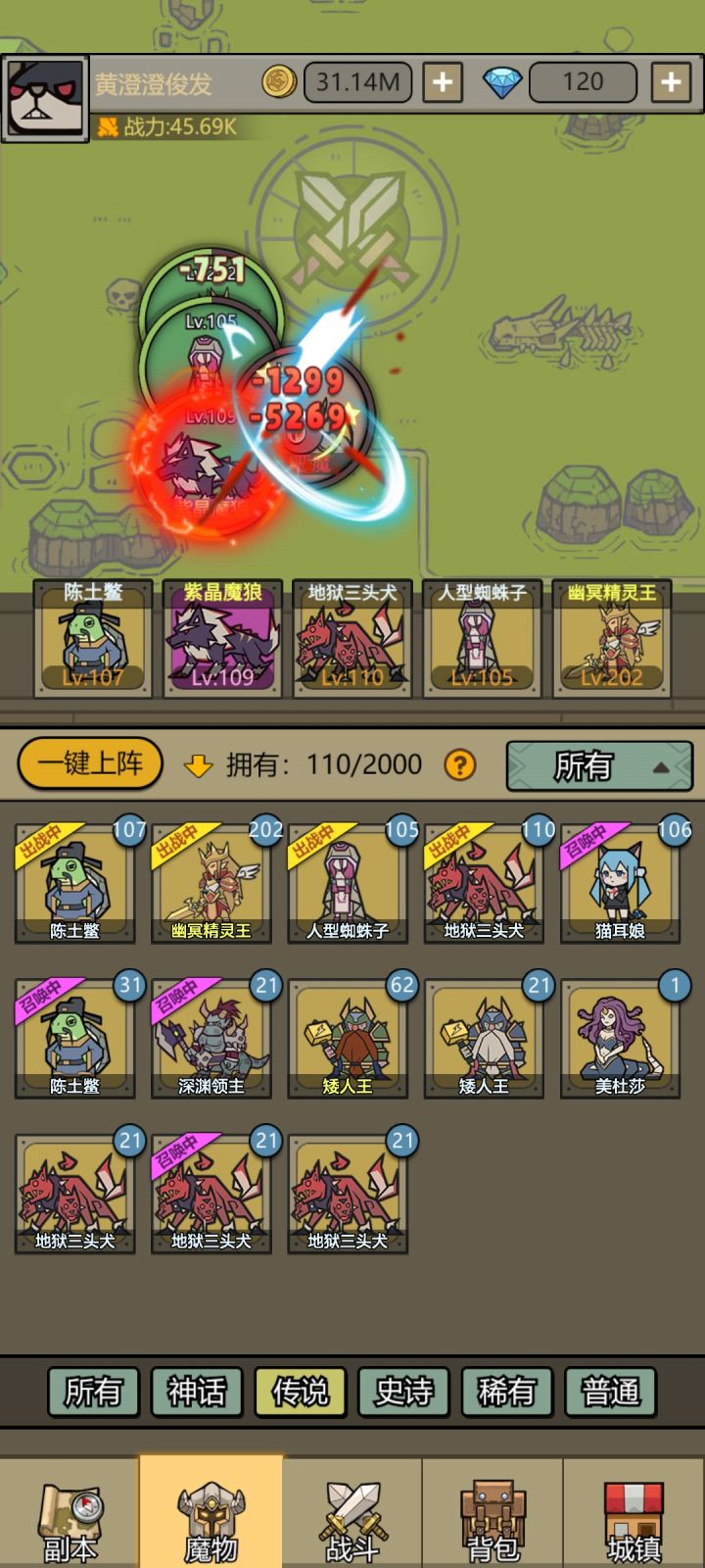 选择上阵魔物时首先对比魔物星级,魔物升星后技能效果和触发概率会提高,不要盲目的选择低星红卡,红卡并不无敌,蓝卡不一定弱。