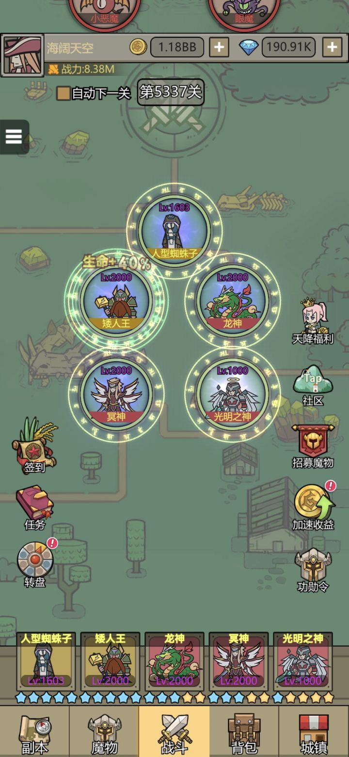 前言我采用了一位大佬的速通攻略,大佬并没有给出培养方案,我根据结果,摸石头过河,由于是速通攻略,我抛弃了很多神话魔物的培养,争取祭坛生仔利益最大化,切忌心浮气躁,慢慢水到渠成,船到桥头自然直阵容思路-前期祭坛生猫五星后把这矮人和猴子祭坛补到5星,然后猫生八星蓝色无损耗的纯抽奖升星弓箭手拉十星 3000关以前无敌,3000以后没用了但是联赛还是无敌紫色三个替代品基本无损耗的纯抽奖升星盾