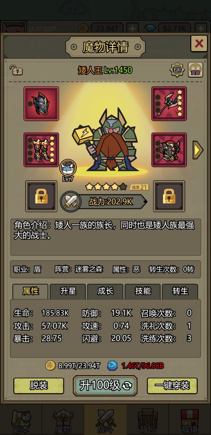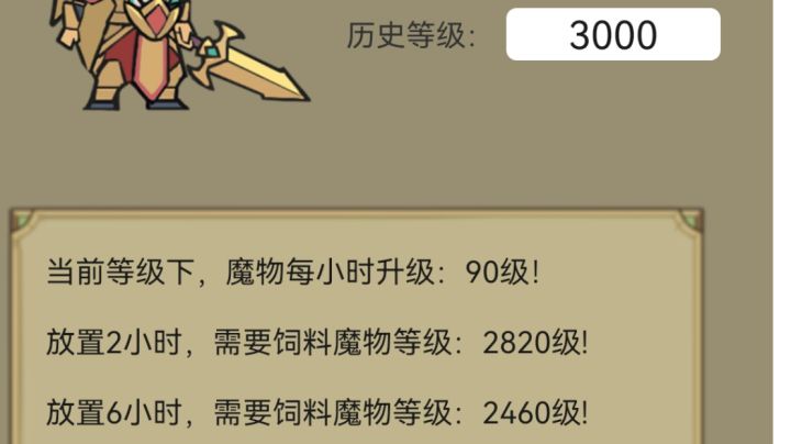 放在酒馆里的魔物也可以在魔物界面升级(只有魔物界面能升,雕像那没有,不知道是不是bug),所以,可以先在酒馆放四只一级的魔物,然后根据放置时间升级,保证收益最大化。