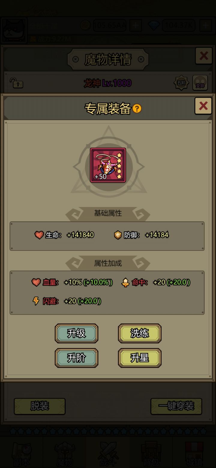 今天终于是把第一个专属装备升满级了,也总结出了几条经验分享给大家,免得后面的小伙伴走弯路。1.每天福利里面神器的两个广告一定要看,这是后期解锁专属装备用来升星和进阶的材料。2.爆出来的装备不要卖,全用来给红色装备升级,然后再拆解,不同装备(红色)等级拆解对应的神器碎片如下:0星=2碎片1星=4碎片2星=8碎片3星=16碎片4星=32碎片5星=64碎片3.同理每天的加速收益最好也看,主要需要加速后的双倍装备,神器碎片真的很重要,是专属装备用来升级和洗练的材料,后期很缺很缺。4.专属装备最高等级是50级。