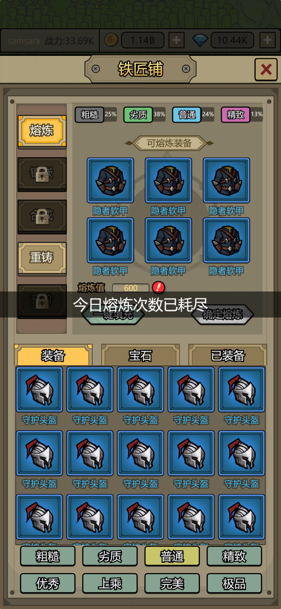 为什么熔炼每天还没用就告诉我次数耗尽