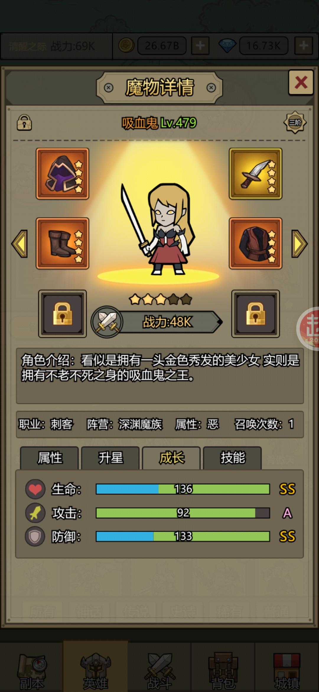 毕竟以现在的设定来看成长数值其实影响不大,到了三百层后都是两三刀被秒,只有三星盾技能触发后的97%免伤开始扛得住(所以想推塔还得多生盾,尽快做出一个高星盾)