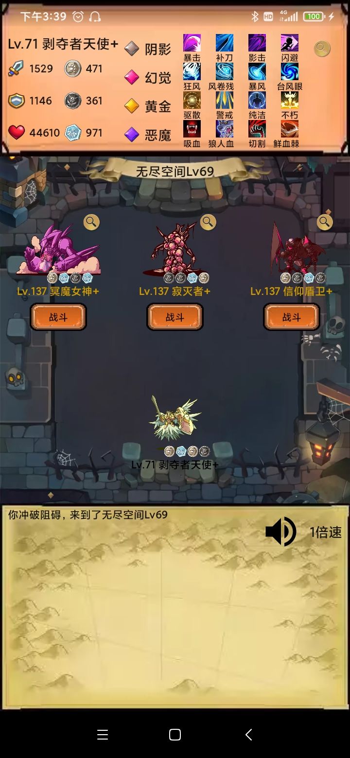 刚爬到200,不过感觉通关迟早了,根本不用选怪,无脑硬上就行了。本来看到月光的说明减少技能伤害,想搭配普攻流,结果技能栏不够,阴影和幻觉只能选一个,到了双鱼就是两个互摸谁都死不了。换成灾难打技能流,结果效果意外的好,因为刚出的这个体系要用到自然,光芒,黄金或机械,除了机械基本没什么强力攻击手段,不过机甲护盾系感觉偏普攻输出一些,还是圣盾系好些。所以留给输出的只有一系了。灾难的代价系扣血厉害,